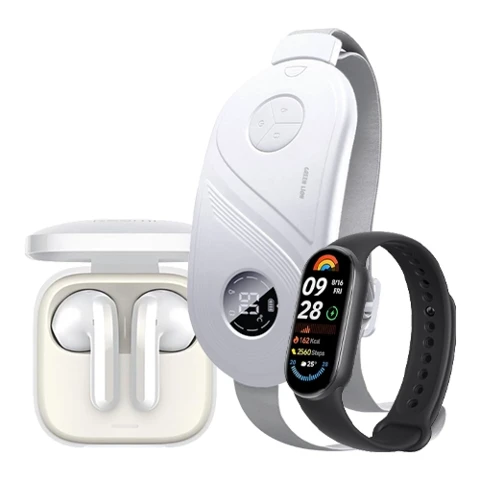 مجموعه 3 عددی هندزفری بلوتوثی شیائومی مدل REDMI BUDS 6 ACTIVE ماساژور گرم کننده قاعدگی گرین مچ بند هوشمند شیائومی مدل Band 9